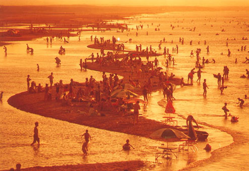 ? ? 1993年10月26日,經(jīng)山東省人民政府批準(zhǔn),煙臺金沙灘旅游度假區(qū)成立。它西起煙臺經(jīng)濟(jì)技術(shù)開發(fā)區(qū)的崗崳山至夾河口,經(jīng)芝罘區(qū)的芝罘島,東至萊山區(qū)的黃海旅游帶,沿海濱拓展,總面積為23.5平方公里。金沙灘度假區(qū),大海碧波萬頃,沙灘細(xì)柔潔凈,林帶郁郁蔥蔥,山水林灘相映成趣,景色秀美,氣候宜人。沿海濱風(fēng)光旅游帶,依次分布有金沙灘國際海水浴場(現(xiàn)改為金沙灘海濱公園)、七彩城嬉水樂園、秦始皇東巡宮、陽主廟、芝罘島觀光索道、黃海游樂城等各具特色的旅游景點。度假區(qū)內(nèi)交通便利,綠地翠蓋,旅游服務(wù)設(shè)施日益完善,已建有三星級飯店4座、二星級飯店1座、旅游涉外飯店8座,旅游度假別墅群、公寓樓娛樂設(shè)施齊全,初步形成了休閑度假的旅游環(huán)境。 因公園內(nèi)沙灘細(xì)柔潔凈,在陽光下泛著金色的光輝,“金沙灘”之名由此而來。國家4A級景區(qū)、國家旅游度假區(qū)。位于煙臺市經(jīng)濟(jì)技術(shù)開發(fā)區(qū)北部。公園內(nèi)最具特色的景觀是萬米沙灘,沙灘長10000米、寬60-180米,沙礫幼細(xì),色澤金黃,面積廣大,坡度平緩,素有“中國北方第一海灘”的美譽(yù)。夏季中午水溫25℃左右,是我國最優(yōu)良的天然海水浴場之一。2002年,被國家海洋局列為國家重點海水浴場,納入國家健康型海水浴場監(jiān)測網(wǎng)絡(luò),海水的各項監(jiān)測指標(biāo)均達(dá)到國家一類標(biāo)準(zhǔn)。1993年向社會開放以來,先后增設(shè)了電瓶車、觀光臺、了望塔兒童樂園、攀巖等觀光游樂設(shè)施,旅游項目主要有沙灘排球、足球、沙灘摩托和驚險刺激的水上娛樂項目。